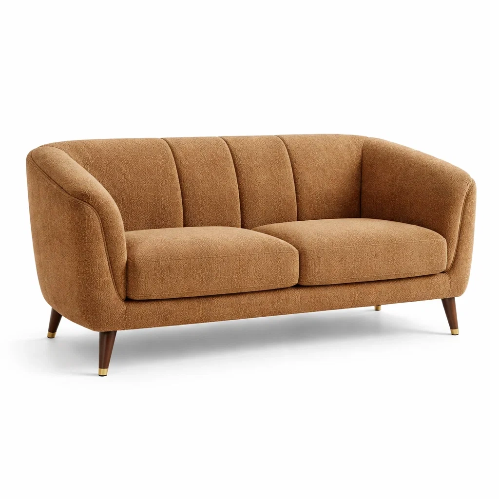 Divano in Tessuto Poliestere Marrone con Gambe in Legno