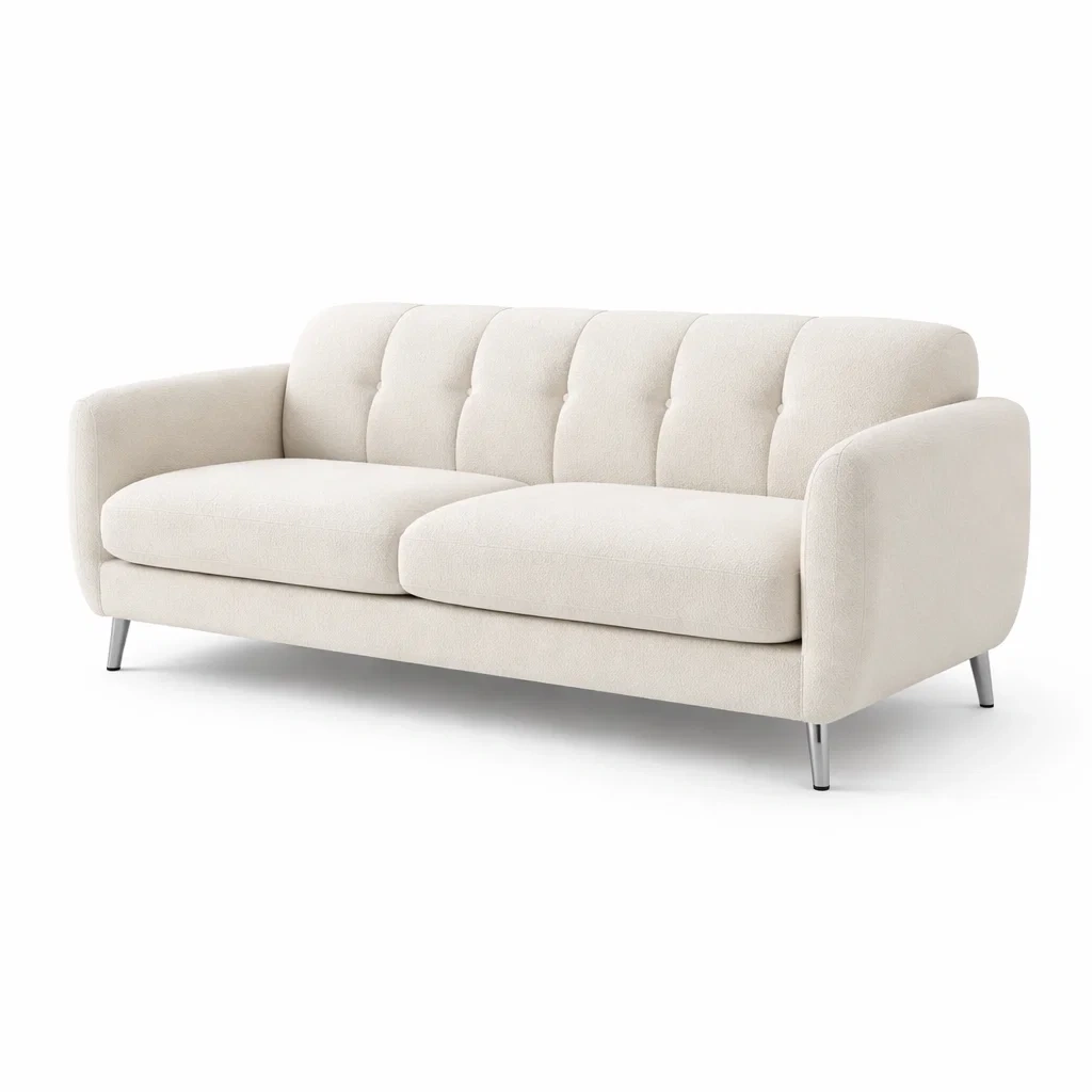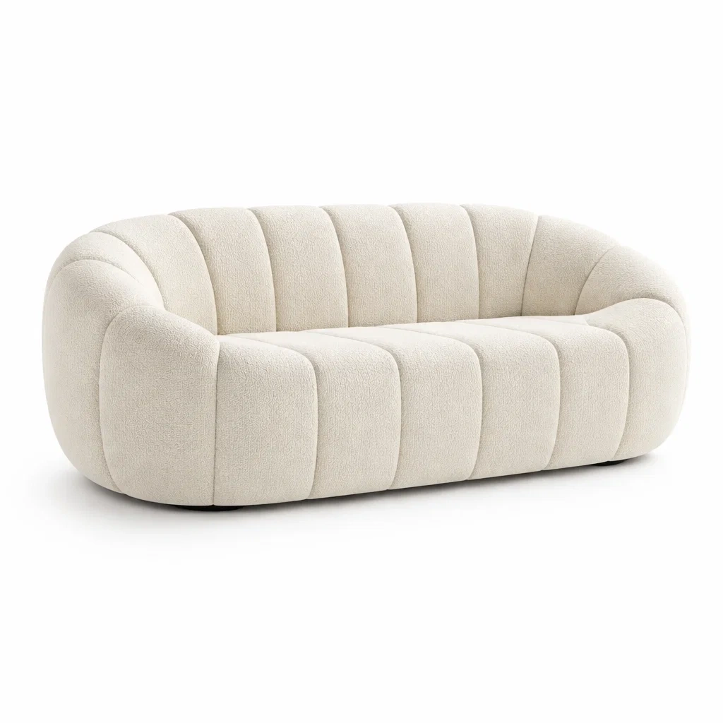 Divano in Tessuto Bouclé Beige con Imbottitura
