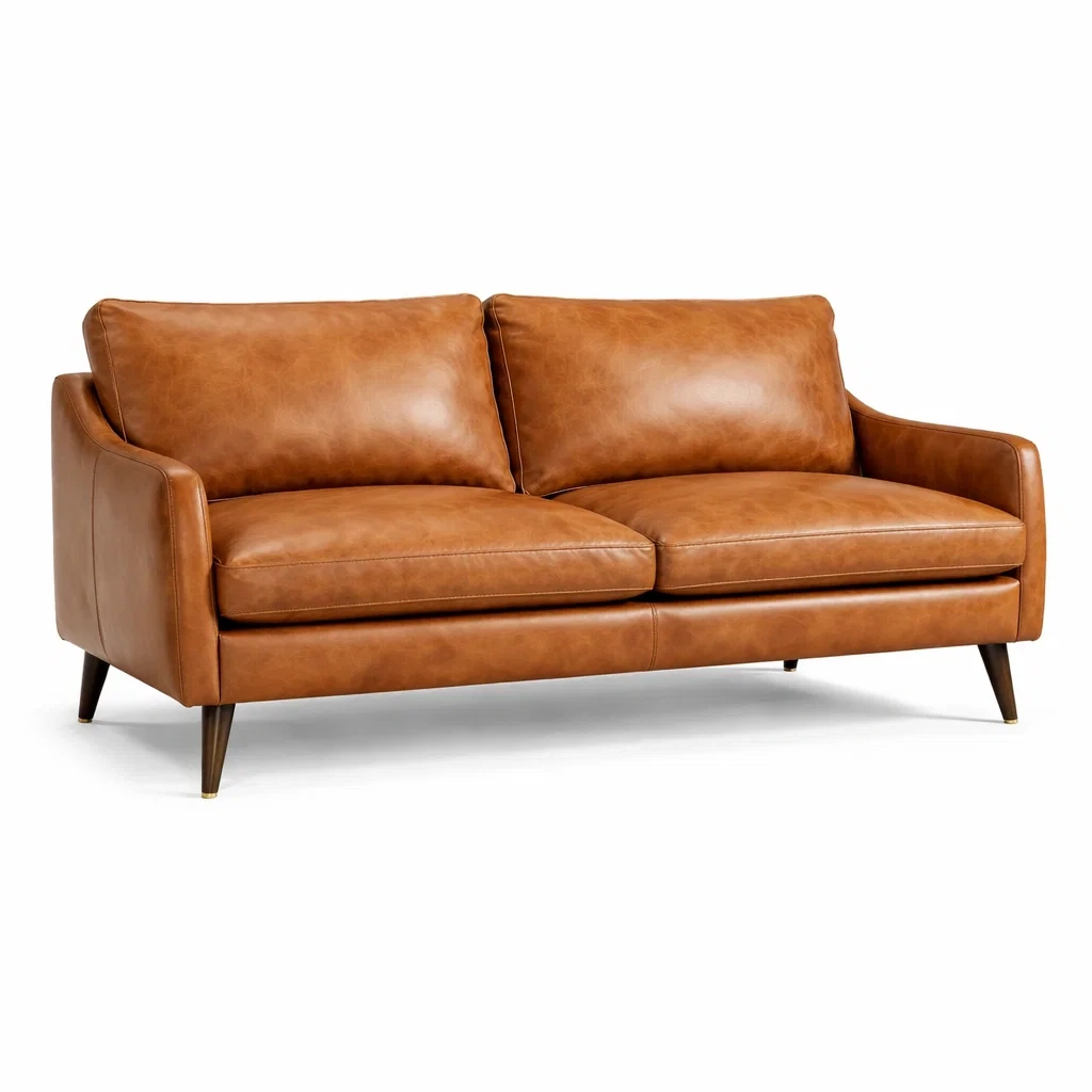 Divano a Due Posti in Pelle Marrone