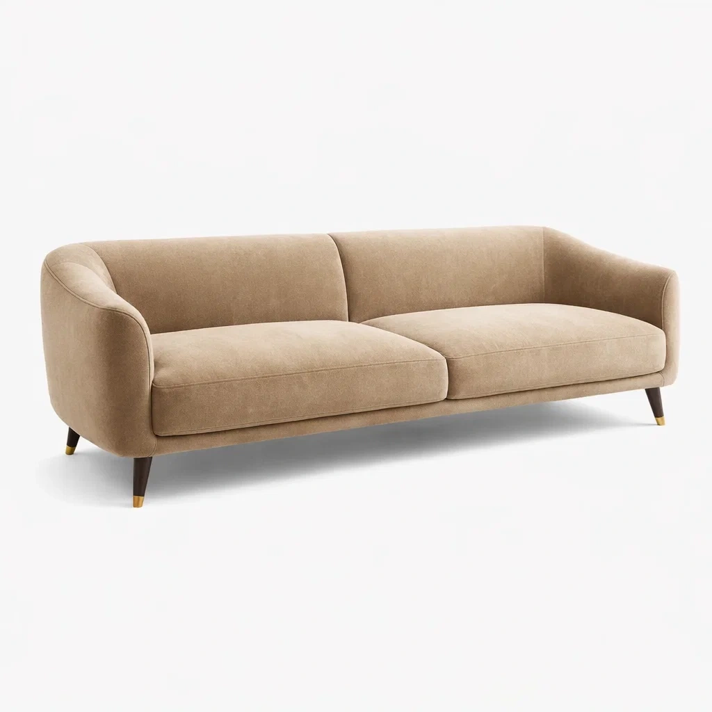 Divano in Tessuto Beige con Gambe in Legno