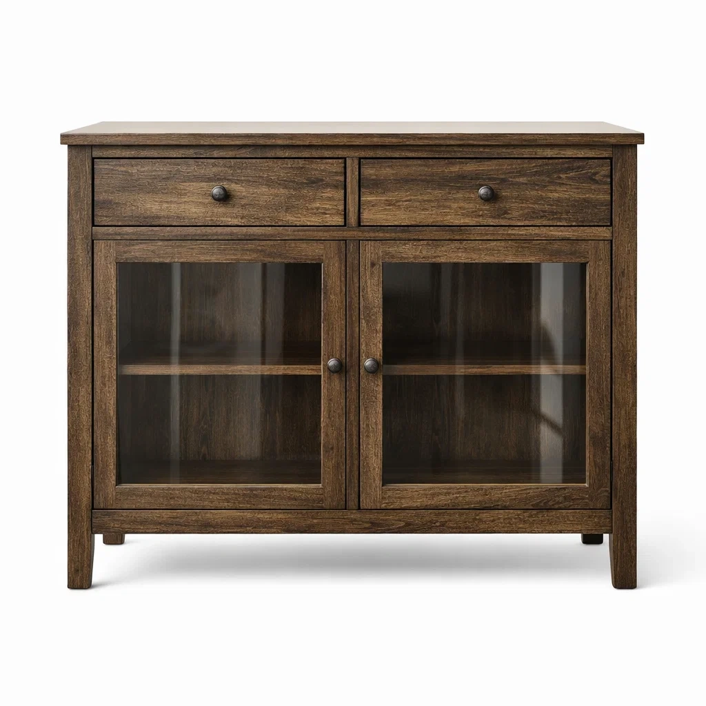 Credenza in Legno Marrone Scuro con Ante in Vetro Temperato e 2 Cassetti
