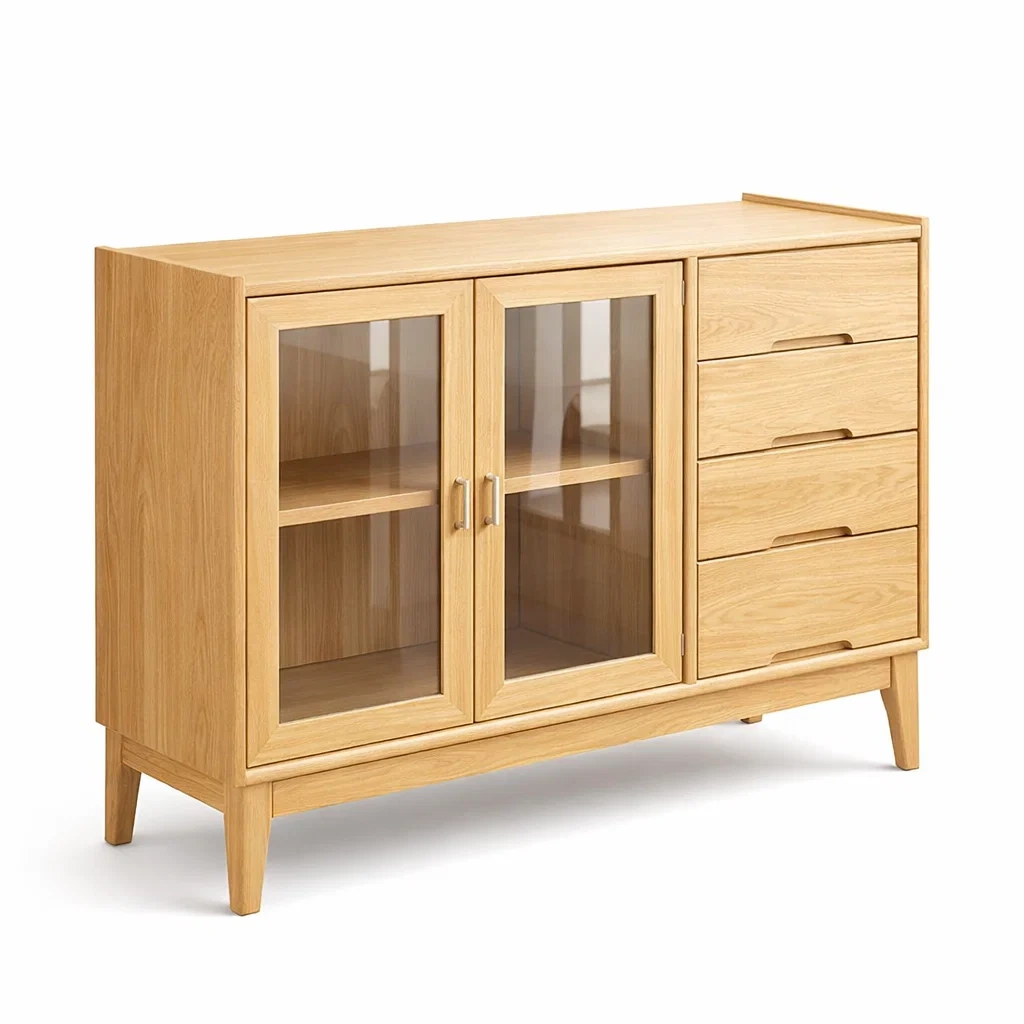 Credenza in Rovere con Vetro Temperato e 4 Cassetti