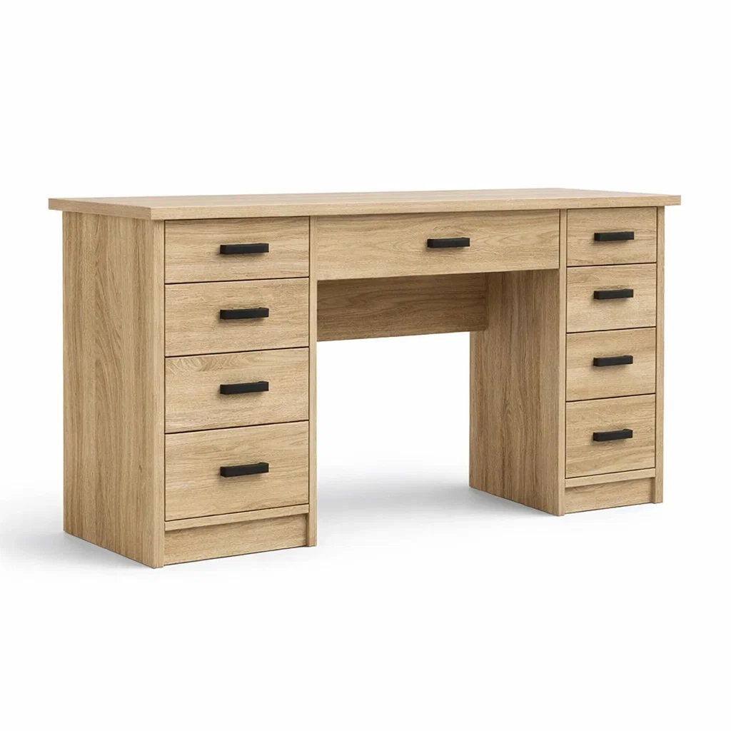 Scrivania in Legno Composito Rovere Chiaro con 9 Cassetti