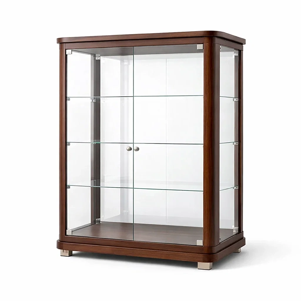 Vetrina in Vetro Temperato e Legno Scuro 90x40x120 cm